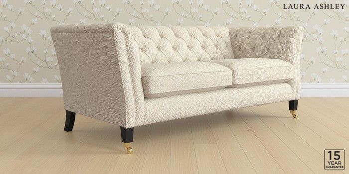 6.12.1 Buy Chatsworth Button Back by Laura Ashley 3 Seater Small Sofa Borwick Natural Straight Brass Castor - Black from the Laura Ashley online shop Click here to use our website with more accessibility support, for example screen readers