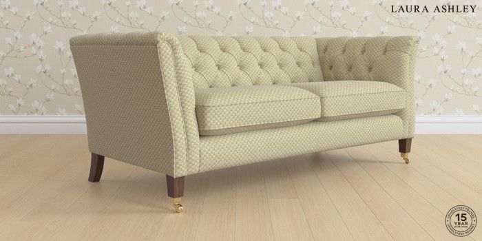 6.12.1 Buy Chatsworth Button Back by Laura Ashley 3 Seater Small Sofa Chequers Hedgerow Green Straight Brass Castor - Chestnut from the Laura Ashley online shop Click here to use our website with more accessibility support, for example screen readers