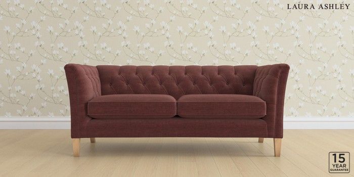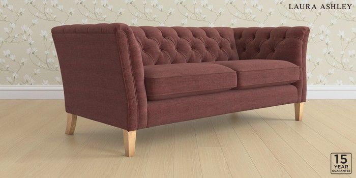 6.12.1 Buy Chatsworth Button Back by Laura Ashley 3 Seater Small Sofa Edwin Chenille Burgundy Red Straight Mid - Light Oak from the Laura Ashley online shop Click here to use our website with more accessibility support, for example screen readers