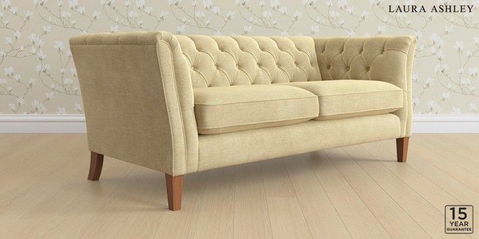 6.12.1 Buy Chatsworth Button Back by Laura Ashley 3 Seater Small Sofa Edwin Chenille Truffle Natural Straight Mid - Teak from the Laura Ashley online shop Click here to use our website with more accessibility support, for example screen readers