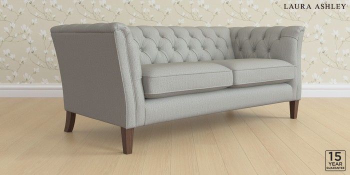6.12.1 Buy Chatsworth Button Back by Laura Ashley 3 Seater Small Sofa Edwin Herringbone Pale Steel Grey Straight Mid - Chestnut from the Laura Ashley online shop Click here to use our website with more accessibility support, for example screen readers