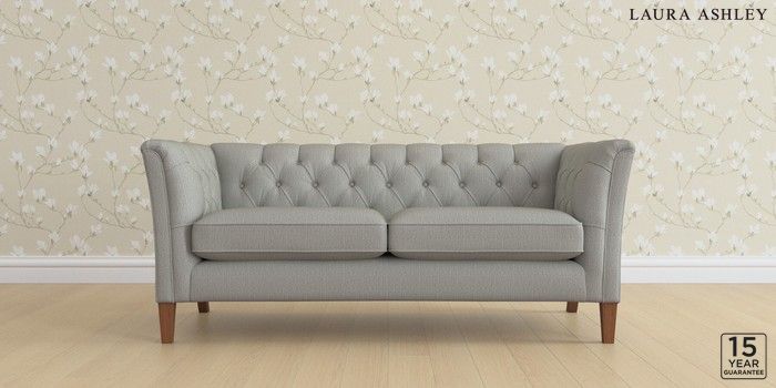 6.12.1 Buy Chatsworth Button Back by Laura Ashley 3 Seater Small Sofa Edwin Herringbone Pale Steel Grey Straight Mid - Teak from the Laura Ashley online shop Click here to use our website with more accessibility support, for example screen readers