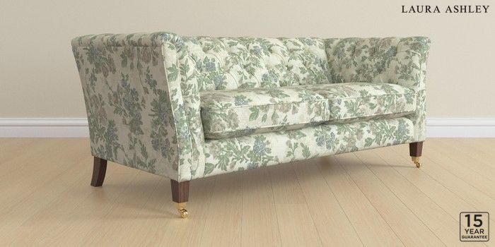6.12.13 Buy Chatsworth Button Back by Laura Ashley 3 Seater Small Sofa Ellerby Seaspray Blue Straight Brass Castor - Chestnut from the Laura Ashley online shop Click here to use our website with more accessibility support, for example screen readers