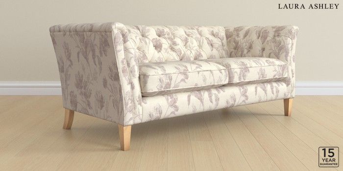 6.12.1 Buy Chatsworth Button Back by Laura Ashley 3 Seater Small Sofa Gosford Weave Dusky Plum Purple Straight Mid - Light Oak from the Laura Ashley online shop Click here to use our website with more accessibility support, for example screen readers