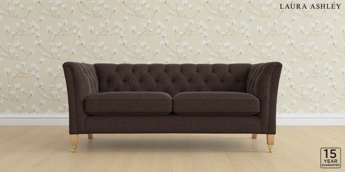 6.12.1 Buy Chatsworth Button Back by Laura Ashley 3 Seater Small Sofa Harley Chestnut Brown Straight Brass Castor - Light Oak from the Laura Ashley online shop Click here to use our website with more accessibility support, for example screen readers
