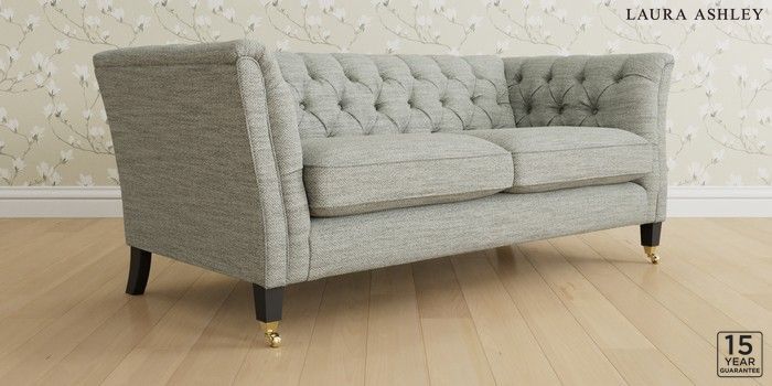 6.12.1 Buy Chatsworth Button Back by Laura Ashley 3 Seater Small Sofa Harley Dove Grey Straight Brass Castor - Black from the Laura Ashley online shop Click here to use our website with more accessibility support, for example screen readers