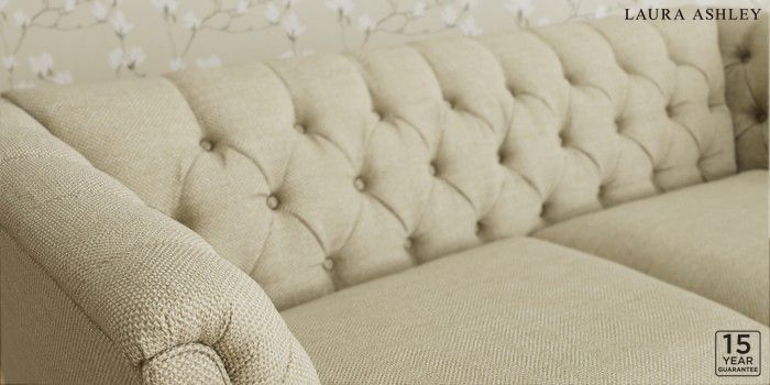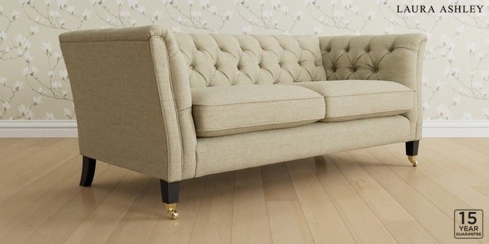 6.12.13 Buy Chatsworth Button Back by Laura Ashley 3 Seater Small Sofa Harley Natural Straight Brass Castor - Black from the Laura Ashley online shop Click here to use our website with more accessibility support, for example screen readers