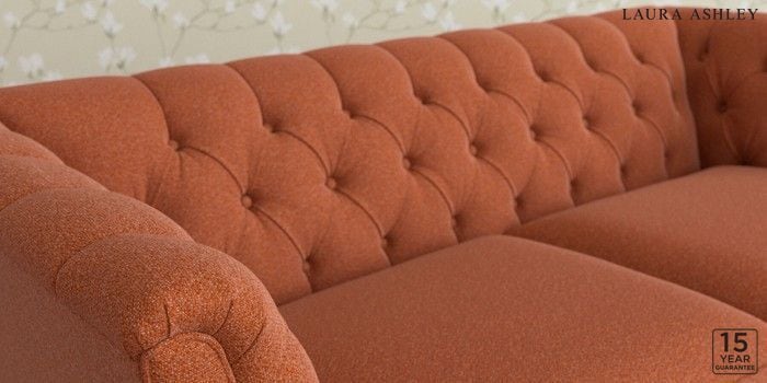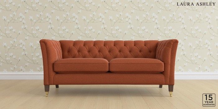6.12.13 Buy Chatsworth Button Back by Laura Ashley 3 Seater Small Sofa Harley Terracotta Orange Straight Brass Castor - Chestnut from the Laura Ashley online shop Click here to use our website with more accessibility support, for example screen readers