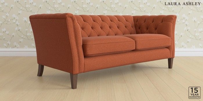 6.12.1 Buy Chatsworth Button Back by Laura Ashley 3 Seater Small Sofa Harley Terracotta Orange Straight Mid - Chestnut from the Laura Ashley online shop Click here to use our website with more accessibility support, for example screen readers