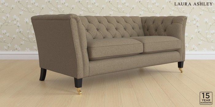 6.12.1 Buy Chatsworth Button Back by Laura Ashley 3 Seater Small Sofa Harley Truffle Natural Straight Brass Castor - Black from the Laura Ashley online shop Click here to use our website with more accessibility support, for example screen readers