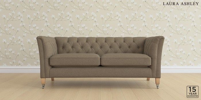 6.12.1 Buy Chatsworth Button Back by Laura Ashley 3 Seater Small Sofa Harley Truffle Natural Straight Chrome Castor - Light Oak from the Laura Ashley online shop Click here to use our website with more accessibility support, for example screen readers