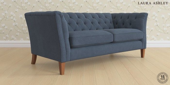 6.12.1 Buy Chatsworth Button Back by Laura Ashley 3 Seater Small Sofa Lundar Chenille Navy Blue Straight Mid - Teak from the Laura Ashley online shop Click here to use our website with more accessibility support, for example screen readers