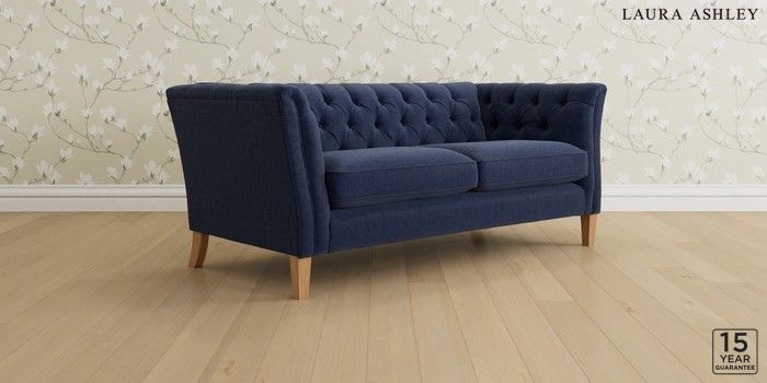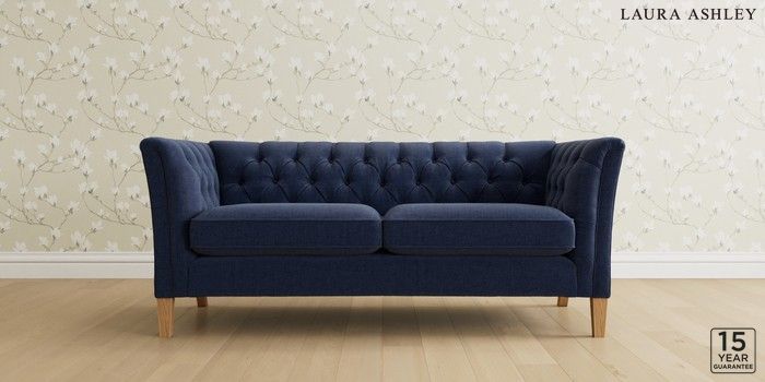 6.12.1 Buy Chatsworth Button Back by Laura Ashley 3 Seater Small Sofa Nantmor Midnight Navy Straight Mid - Light Oak from the Laura Ashley online shop Click here to use our website with more accessibility support, for example screen readers