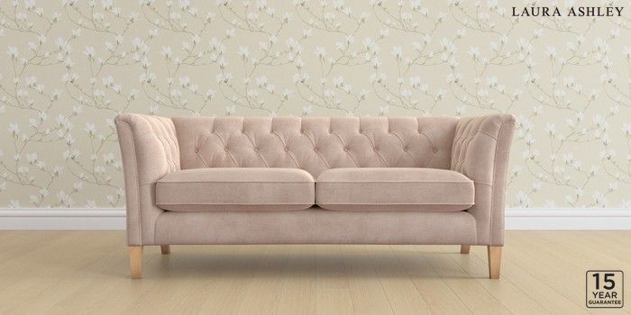6.12.1 Buy Chatsworth Button Back by Laura Ashley 3 Seater Small Sofa Orla Chalk Pink Straight Mid - Light Oak from the Laura Ashley online shop Click here to use our website with more accessibility support, for example screen readers