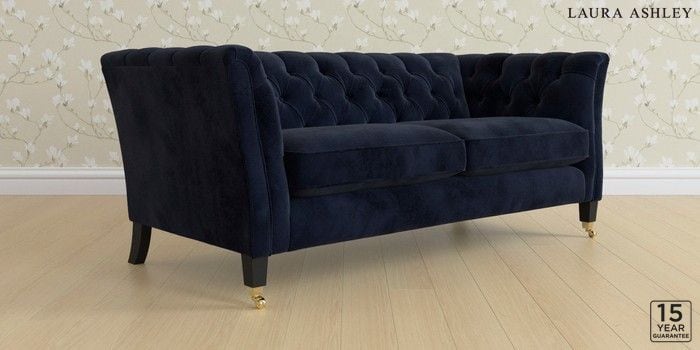 6.12.1 Buy Chatsworth Button Back by Laura Ashley 3 Seater Small Sofa Orla Midnight Navy Straight Brass Castor - Black from the Laura Ashley online shop Click here to use our website with more accessibility support, for example screen readers