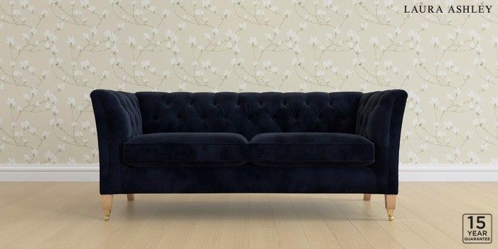 6.12.13 Buy Chatsworth Button Back by Laura Ashley 3 Seater Small Sofa Orla Midnight Navy Straight Brass Castor - Light Oak from the Laura Ashley online shop Click here to use our website with more accessibility support, for example screen readers