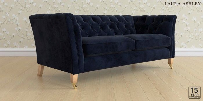 6.12.1 Buy Chatsworth Button Back by Laura Ashley 3 Seater Small Sofa Orla Midnight Navy Straight Brass Castor - Light Oak from the Laura Ashley online shop Click here to use our website with more accessibility support, for example screen readers