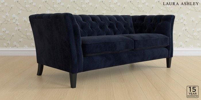 6.12.1 Buy Chatsworth Button Back by Laura Ashley 3 Seater Small Sofa Orla Midnight Navy Straight Mid - Black from the Laura Ashley online shop Click here to use our website with more accessibility support, for example screen readers