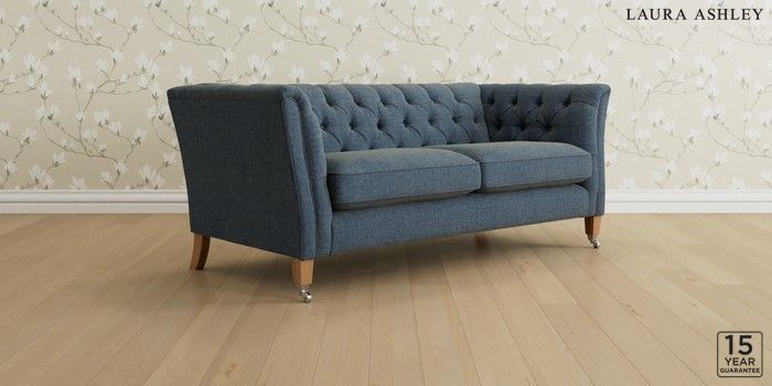 6.12.1 Buy Chatsworth Button Back by Laura Ashley 3 Seater Small Sofa Orla Seaspray Blue Straight Chrome Castor - Light Oak from the Laura Ashley online shop Click here to use our website with more accessibility support, for example screen readers
