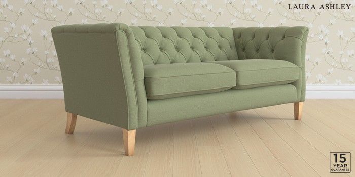 6.12.13 Buy Chatsworth Button Back by Laura Ashley 3 Seater Small Sofa Peyton Hedgerow Green Straight Mid - Light Oak from the Laura Ashley online shop Click here to use our website with more accessibility support, for example screen readers