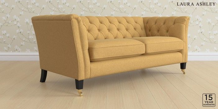 6.12.1 Buy Chatsworth Button Back by Laura Ashley 3 Seater Small Sofa Peyton Ochre Yellow Straight Brass Castor - Black from the Laura Ashley online shop Click here to use our website with more accessibility support, for example screen readers