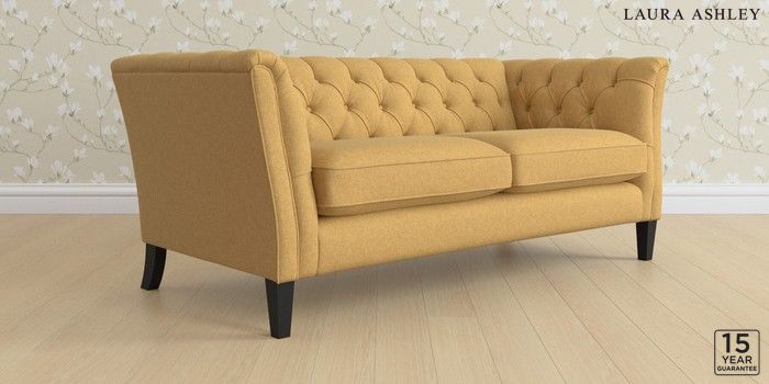 6.12.1 Buy Chatsworth Button Back by Laura Ashley 3 Seater Small Sofa Peyton Ochre Yellow Straight Mid - Black from the Laura Ashley online shop Click here to use our website with more accessibility support, for example screen readers