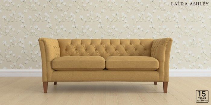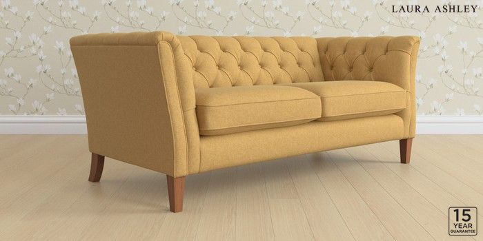 6.12.1 Buy Chatsworth Button Back by Laura Ashley 3 Seater Small Sofa Peyton Ochre Yellow Straight Mid - Teak from the Laura Ashley online shop Click here to use our website with more accessibility support, for example screen readers