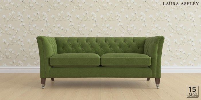 6.12.1 Buy Chatsworth Button Back by Laura Ashley 3 Seater Small Sofa Tichwell Olive Green Straight Chrome Castor - Chestnut from the Laura Ashley online shop Click here to use our website with more accessibility support, for example screen readers