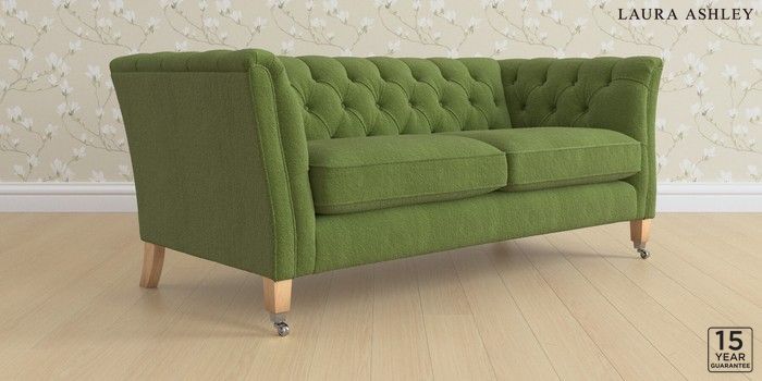 6.12.1 Buy Chatsworth Button Back by Laura Ashley 3 Seater Small Sofa Tichwell Olive Green Straight Chrome Castor - Light Oak from the Laura Ashley online shop Click here to use our website with more accessibility support, for example screen readers
