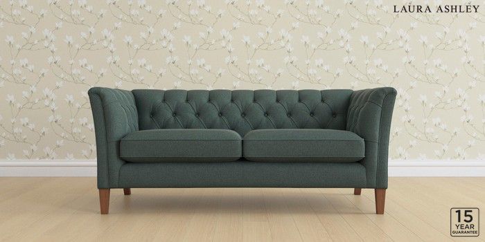 6.12.1 Buy Chatsworth Button Back by Laura Ashley 3 Seater Small Sofa Wooton Forest Green Straight Mid - Teak from the Laura Ashley online shop Click here to use our website with more accessibility support, for example screen readers
