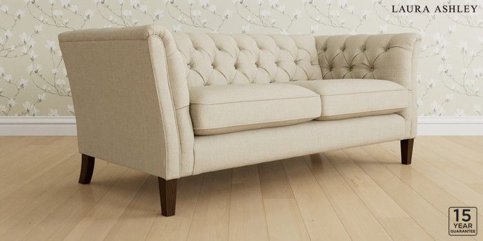 6.12.1 Buy Chatsworth Button Back by Laura Ashley 3 Seater Small Sofa Wooton Natural Straight Mid - Chestnut from the Laura Ashley online shop Click here to use our website with more accessibility support, for example screen readers