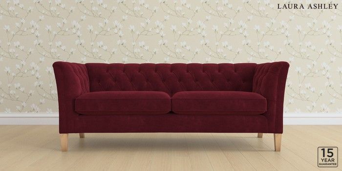 6.12.13 Buy Chatsworth Button Back by Laura Ashley 3 Seater Sofa Alwyn Velvet Burgundy Red Straight Mid - Light Oak from the Laura Ashley online shop Click here to use our website with more accessibility support, for example screen readers