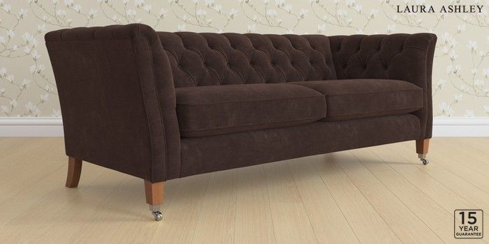 6.12.1 Buy Chatsworth Button Back by Laura Ashley 3 Seater Sofa Alwyn Velvet Chocolate Brown Straight Chrome Castor - Teak from the Laura Ashley online shop Click here to use our website with more accessibility support, for example screen readers