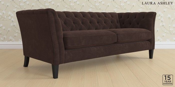 6.12.1 Buy Chatsworth Button Back by Laura Ashley 3 Seater Sofa Alwyn Velvet Chocolate Brown Straight Mid - Black from the Laura Ashley online shop Click here to use our website with more accessibility support, for example screen readers
