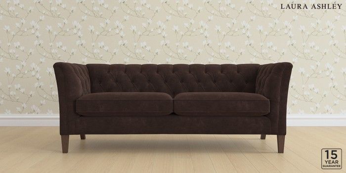6.12.1 Buy Chatsworth Button Back by Laura Ashley 3 Seater Sofa Alwyn Velvet Chocolate Brown Straight Mid - Chestnut from the Laura Ashley online shop Click here to use our website with more accessibility support, for example screen readers