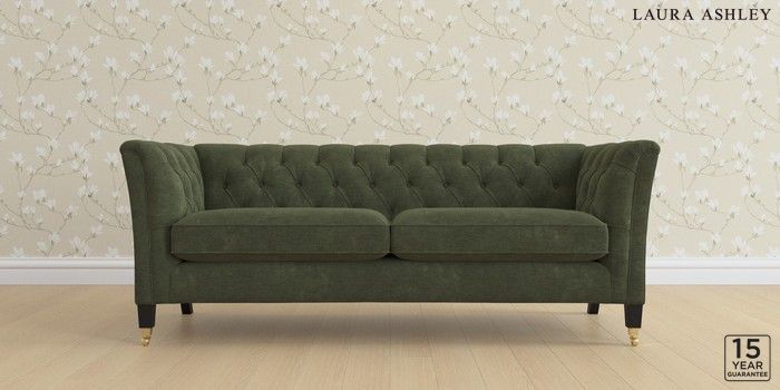 6.12.1 Buy Chatsworth Button Back by Laura Ashley 3 Seater Sofa Alwyn Velvet Ivy Green Straight Brass Castor - Black from the Laura Ashley online shop Click here to use our website with more accessibility support, for example screen readers