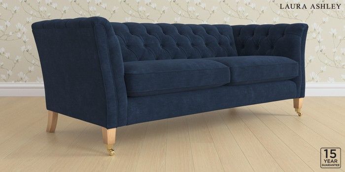 6.12.1 Buy Chatsworth Button Back by Laura Ashley 3 Seater Sofa Alwyn Velvet Midnight Navy Straight Brass Castor - Light Oak from the Laura Ashley online shop Click here to use our website with more accessibility support, for example screen readers