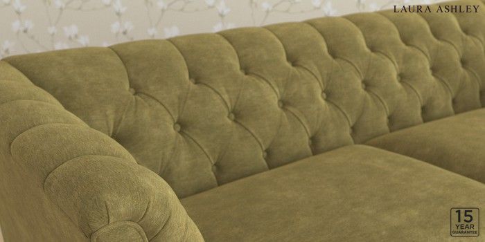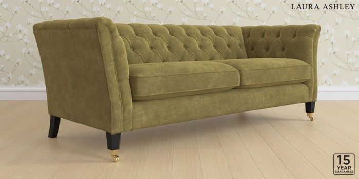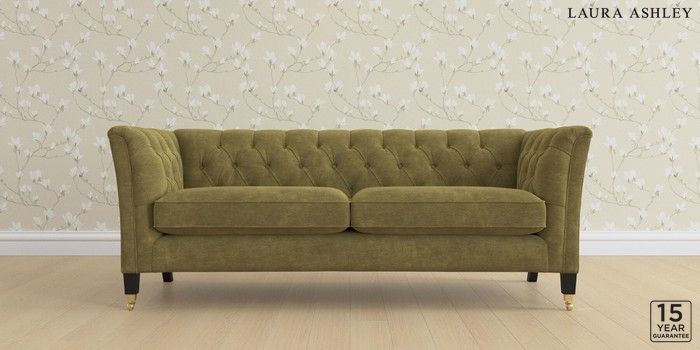 6.12.13 Buy Chatsworth Button Back by Laura Ashley 3 Seater Sofa Alwyn Velvet Olive Green Straight Brass Castor - Black from the Laura Ashley online shop Click here to use our website with more accessibility support, for example screen readers