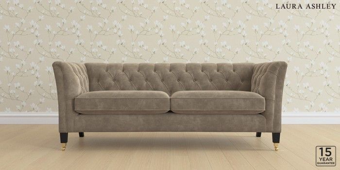 6.12.1 Buy Chatsworth Button Back by Laura Ashley 3 Seater Sofa Alwyn Velvet Truffle Natural Straight Brass Castor - Black from the Laura Ashley online shop Click here to use our website with more accessibility support, for example screen readers