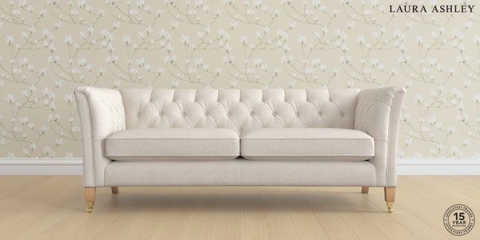 7.2.6 Buy Chatsworth Button Back by Laura Ashley 3 Seater Sofa Anneliese Oyster Natural Straight Brass Castor - Light Oak from the Laura Ashley online shop Click here to use our website with more accessibility support, for example screen readers