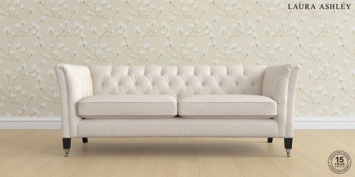 7.2.6 Buy Chatsworth Button Back by Laura Ashley 3 Seater Sofa Anneliese Oyster Natural Straight Chrome Castor - Black from the Laura Ashley online shop Click here to use our website with more accessibility support, for example screen readers