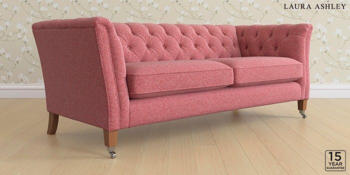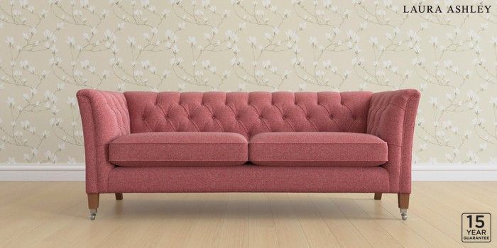6.12.1 Buy Chatsworth Button Back by Laura Ashley 3 Seater Sofa Anneliese Rosewood Red Straight Chrome Castor - Teak from the Laura Ashley online shop Click here to use our website with more accessibility support, for example screen readers