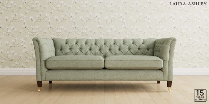 6.12.1 Buy Chatsworth Button Back by Laura Ashley 3 Seater Sofa Anneliese Sage Green Straight Brass Castor - Chestnut from the Laura Ashley online shop Click here to use our website with more accessibility support, for example screen readers