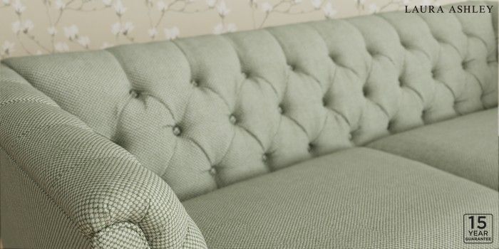 6.12.1 Buy Chatsworth Button Back by Laura Ashley 3 Seater Sofa Anneliese Sage Green Straight Brass Castor - Light Oak from the Laura Ashley online shop Click here to use our website with more accessibility support, for example screen readers