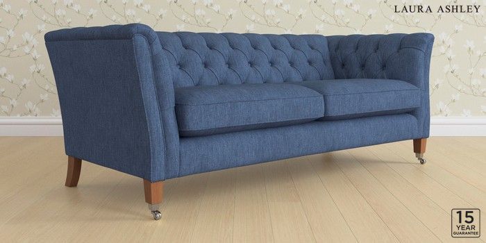 6.12.13 Buy Chatsworth Button Back by Laura Ashley 3 Seater Sofa Bainton Midnight Navy Straight Chrome Castor - Teak from the Laura Ashley online shop Click here to use our website with more accessibility support, for example screen readers