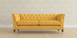 6.12.1 Buy Chatsworth Button Back by Laura Ashley 3 Seater Sofa Bainton Ochre Yellow Straight Brass Castor - Chestnut from the Laura Ashley online shop Click here to use our website with more accessibility support, for example screen readers