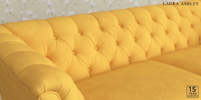 6.12.1 Buy Chatsworth Button Back by Laura Ashley 3 Seater Sofa Bainton Ochre Yellow Straight Chrome Castor - Teak from the Laura Ashley online shop Click here to use our website with more accessibility support, for example screen readers