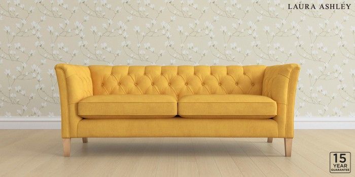6.12.1 Buy Chatsworth Button Back by Laura Ashley 3 Seater Sofa Bainton Ochre Yellow Straight Mid - Light Oak from the Laura Ashley online shop Click here to use our website with more accessibility support, for example screen readers