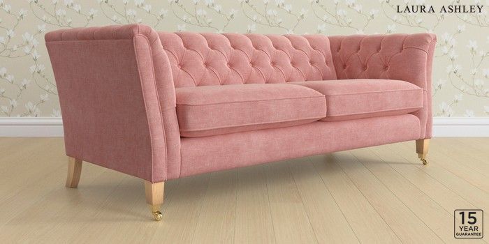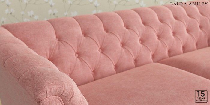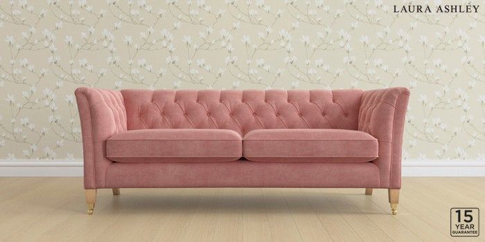 6.12.1 Buy Chatsworth Button Back by Laura Ashley 3 Seater Sofa Bainton Old Rose Pink Straight Brass Castor - Light Oak from the Laura Ashley online shop Click here to use our website with more accessibility support, for example screen readers