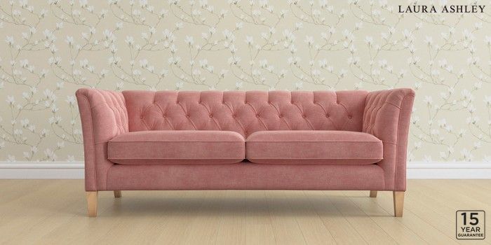 6.12.1 Buy Chatsworth Button Back by Laura Ashley 3 Seater Sofa Bainton Old Rose Pink Straight Mid - Light Oak from the Laura Ashley online shop Click here to use our website with more accessibility support, for example screen readers